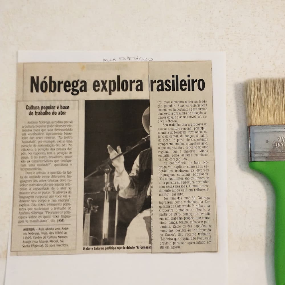 Para um artista, décadas de uma relação longa com a imprensa criam uma galeria de reações às suas obras, reações que nos mostram como elas foram recebidas no momento em que surgiram, e como uma reputação se consolidou. E isto gera um acervo aberto a consultas eventuais e a estudos aprofundados de quem pesquisa a cultura brasileira deste último meio século. Do incessante diálogo do Brasil consigo mesmo. Da incessante negociação entre artistas que, vindos de “planetas” distantes, com apenas um dia de convivência já se olham com menos desconfiança, e com mais admiração e respeito. Da enorme conversa brasileira, este murmúrio de Cultura que mantém vivo o Brasil, e que Antonio Nóbrega alimenta há tantos anos com sua energia, sua inspiração e seu exemplo.