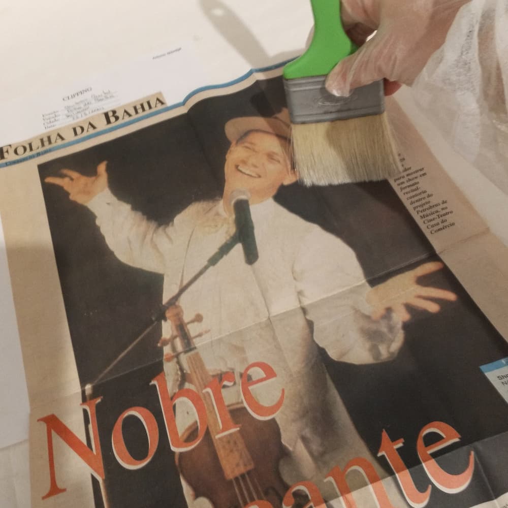 Para a manipulação e digitalização segura, tanto no tocante à integridade física dos materiais quanto à saúde dos profissionais envolvidos, foi realizado o procedimento de higienização mecânica com trinchas para limpeza de sujidades, e o processo de desmetalização para a retirada de grampos metálicos, evitando ferrugem.