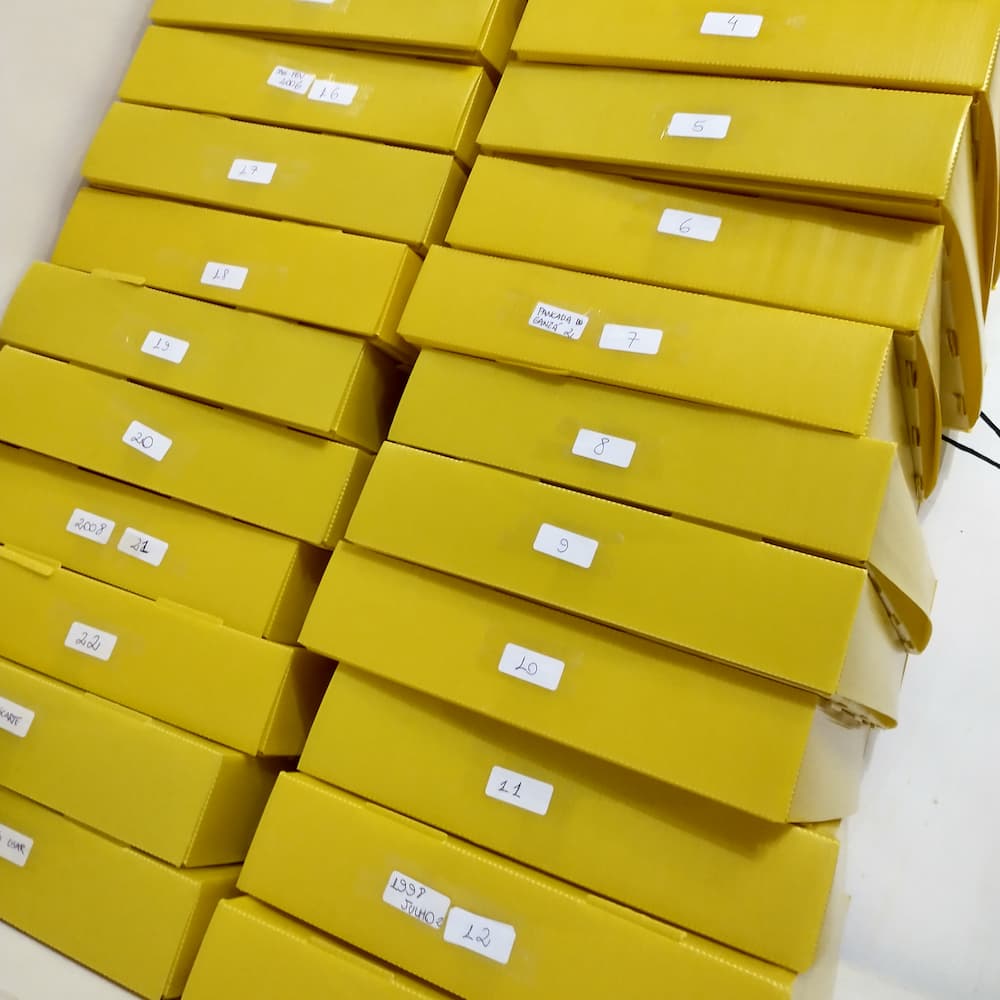 Antes, a documentação estava precariamente acondicionada em pastas e caixas feitas de materiais acidificados, em condições ambientais desfavoráveis à sua conservação. Portanto, foi acondicionada em capas de papel neutro e realocada para caixas poliondas higienizadas devidamente identificadas no sistema de organização, garantindo uma maior durabilidade.